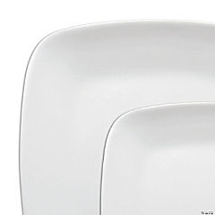 Solid White Flat Rounded Square Disposable Plastic Dinnerware Value Set (40 Dinner Plates + 40 Salad Plates)