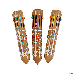 4" Mini 10-Color Gingerbread Plastic Shuttle Pens - 12 Pc.