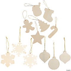 3 1/2" x 3 1/2" DIY Unfinished Wood Christmas Icon Ornaments - Makes 12