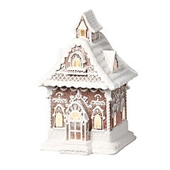 Whimsically Sweet Gingerbread Home Lighted Christmas Decoration, 7" LED Table Figurine Holiday Decor