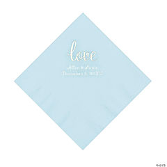 Light Blue Love Script Personalized Napkins with Silver Foil - Luncheon