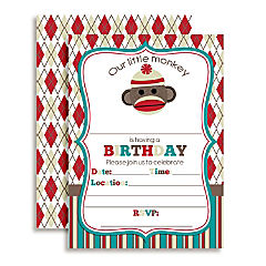 AmandaCreation Sock Monkey Birthday Invites 40pc.