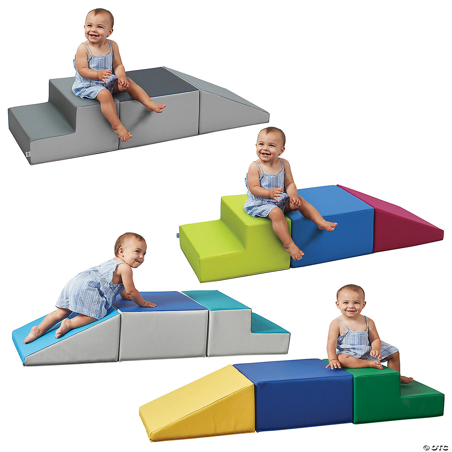 The confidence-boosting Toddler Playtime Climber is perfect beginner climber for babies, toddlers and kids! Little hands and feet can explore up the soft steps, crawl across the platform and coast down the gentle slide on this perfect-sized playground. The three-piece play structure is made with dense foam shapes covered in a soft leather polyurethane material for safe and cozy play. Pieces attach at the bottom with convenient hook-and-loop fasteners; while a non-slip bottom helps keep them safely in place. Cleanup is a breeze — just wipe down the structure with a cloth and a mild soap-and-water solution after use. Children should remove shoes before play to ensure product longevity. Recommended for ages 9 months-3 years; adult supervision required. Special Shipping Information: This item ships separately from other items in your order. This item cannot ship to a P.O. Box. This item may be subject to additional processing days. ITEM IS NOT ELIGIBLE FOR EXPEDITED SHIPPING