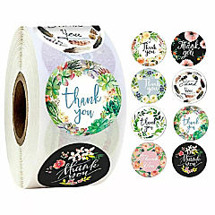 1 Roll Of 500Pcs 1"/1.5" Assorted Floral Thank You Stickers Round Sealing Labels