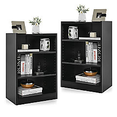 Costway 2 PCS 3-Tier Bookcase Open Multipurpose Display Rack Cabinet with Adjustable Shelves Black