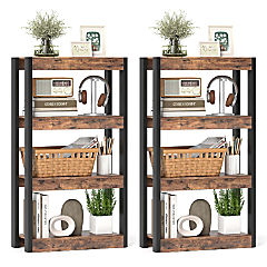 Costway 2 PCS 4 Tier Bookshelf Wooden Bookcase with Dual Anti-Tipping Kits Open Shelving Unit Brown