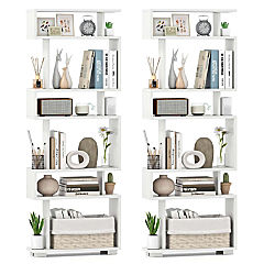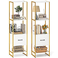 Costway 2 PCS 5-Tier Bookshelf with 4 Open Shelves Storage Drawer Book Storage Organizer White