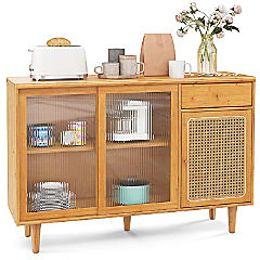 Costway Buffet Sideboard Cabinet Rattan Console Table with Sliding Doors Storage Drawer