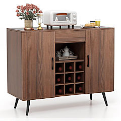 Costway Buffet Sideboard Cabinet Wine Bar Cabinet with Drawer & Adjustable Shelves