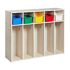 ECR4Kids Streamline 5-Section Coat Locker with Scoop Front Storage Bins, Natural, Assorted