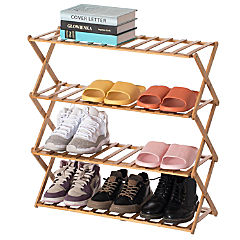 Basicwise Bamboo Foldable Shoe Rack, Free Standing Shoe Organizer Storage Rack, 4 Tier