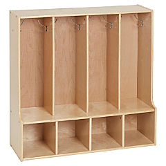 ECR4Kids Streamline 4-Section Coat Locker, Toddler Size, Kids Furniture, Natural