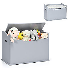 Babyjoy Kids Toy Box Wooden Flip-top Storage Chest Bench W/ Cushion Safety Hinge Gray