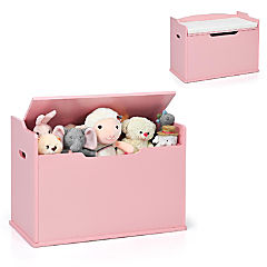 Babyjoy Kids Toy Box Wooden Flip-top Storage Chest Bench W/ Cushion Safety Hinge Pink