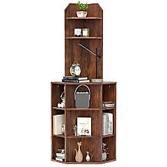 Costway 6-Tier Corner Shelf 63" Tall Corner Bookshelf with 2 USB Ports & Charging Station Brown