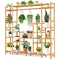 Costway 9-Tier Bamboo Plant Stand Potted Holder w/Hanging Rack Tall Display Shelf Unit