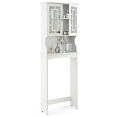 Costway Over the Toilet Storage Bathroom Spacesaver Cabinet Tower Organizer Shelf & Doors White