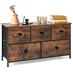 Costway 5-Drawer Dresser Fabric Storage Tower w/wooden Top Chest Organizer Rustic Brown