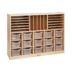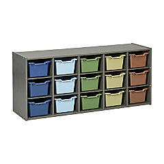 ECR4Kids Streamline 15 Cubby Tray Cabinet with 15 Scoop Front Storage Bins, 3x5, Grey Wash, Earthtone