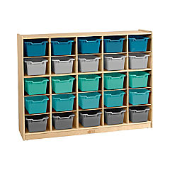 ECR4Kids 25 Cubby Mobile Tray Cabinet with Scoop Front Storage Bins, Natural, Contemporary