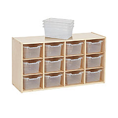 ECR4Kids Streamline 12 Cubby Tray Cabinet with 15 Scoop Front Storage Bins, 3x4, Natural, Clear