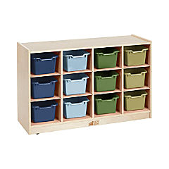 ECR4Kids Streamline 12 Cubby Tray Cabinet with 15 Scoop Front Storage Bins, 3x4, Natural, Contemporary