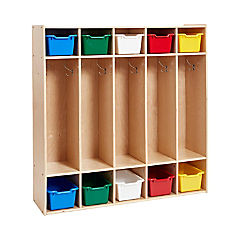 ECR4Kids 5-Section Coat Locker and Scoop Front Storage Bins, Natural, Contemporary
