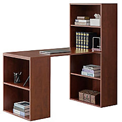 Basicwise Computer Writing Workstation Table with Combo Bookshelf Bookcase, Large Cherry