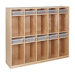 ECR4Kids 10-Section Storage Locker and Letter Size Trays with Lids, Natural, Clear