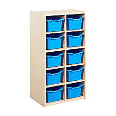 ECR4Kids Streamline 10 Cubby Tray Cabinet with 10 Scoop Front Storage Bins, 5x2, Natural, Blue