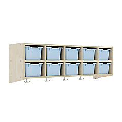 ECR4Kids Streamline 10-Section Hanging Coat Locker with Scoop Front Storage Bins, Natural, Powder Blue