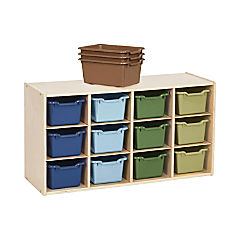 ECR4Kids Streamline 12 Cubby Tray Cabinet with 15 Scoop Front Storage Bins, 3x4, Natural, Earthtone