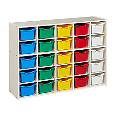 ECR4Kids Streamline 25 Cubby Tray Cabinet with 25 Scoop Front Storage Bins, 5x5, White Wash, Assorted