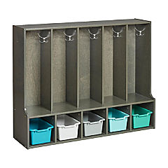 ECR4Kids Streamline 5-Section Toddler Coat Locker, Grey Wash