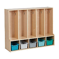 ECR4Kids Streamline 5-Section Coat Locker with Scoop Front Storage Bins, Classroom Furniture, Contemporary