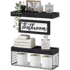 Farmhouse Bathroom Floating Shelves, 16" Wall-Mounted Set