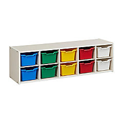 ECR4Kids Streamline 10 Cubby Tray Cabinet with 10 Scoop Front Storage Bins, 2x5, White Wash, Assorted