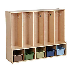 ECR4Kids 5-Section Coat Locker and Scoop Front Storage Bins, Natural, Assorted