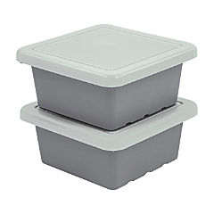 ECR4Kids Square Bin with Lid, Grey, 2-Pack