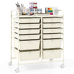 Costway 12 Drawer Rolling Storage Cart Tools Scrapbook Paper Studio School Organizer Grey Beige and Yellow
