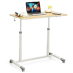 Goplus Height Adjustable Computer Desk Sit Stand Rolling Notebook Table Natural