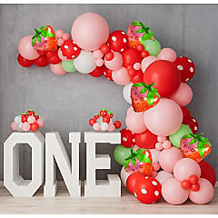 Strawberry Balloons Garland Arch Kit 127pcs for Berry-Themed First Birthday Party & Shower Decor.