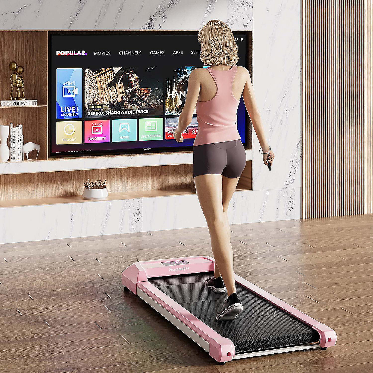 SuperFit 0.6-3.8MPH Walking Pad Under Desk Treadmill with Remote Control and LED Display Pink