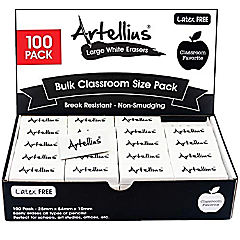White Erasers Pack of 100 - Large Size Latex & Smudge Free for Art Classrooms, Drawing, Teachers, Homeschool, and More!