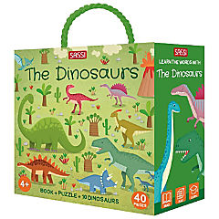 Sassi: Q-Box - Dinosaurs - 40pc Puzzle,Booklet & 10 Dino Figures,Interactive Fun
