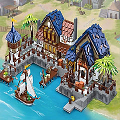 No-Name Unique Building Blocks Medieval Harbor with Lights and Box