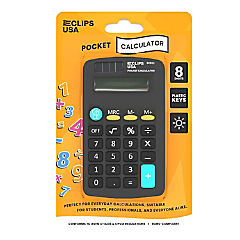 E-Clips USA Pocket-Sized Calculator - 8 Standard Functions, Solar Powered, Handheld , 36 Units