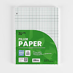 E-Clips USA Quad-Ruled Filler Paper - White Loose-Leaf, Fits Standard 3-Ring Binder, 100 Sheets , 48 Units