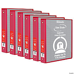 BAZIC Products 3-Ring View Binder with 2 Pockets, 1", Red, Pack of 6