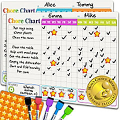 QUOKKA Behavior Chore Chart for Multiple Kids -7x10 inch Magnetic Board Also Hangs on The Wall - Includes 2 Charts and Accessories